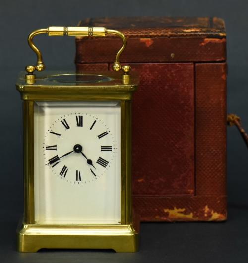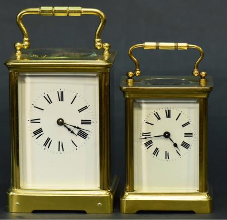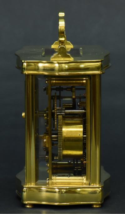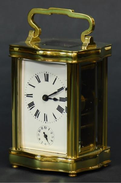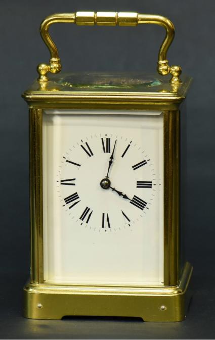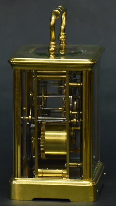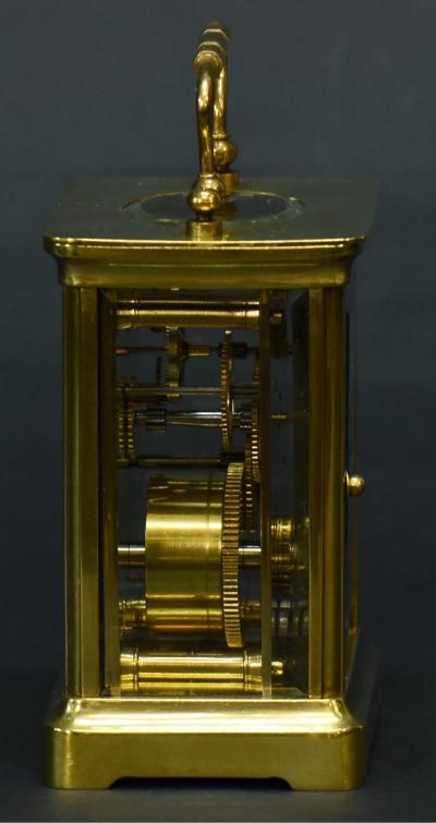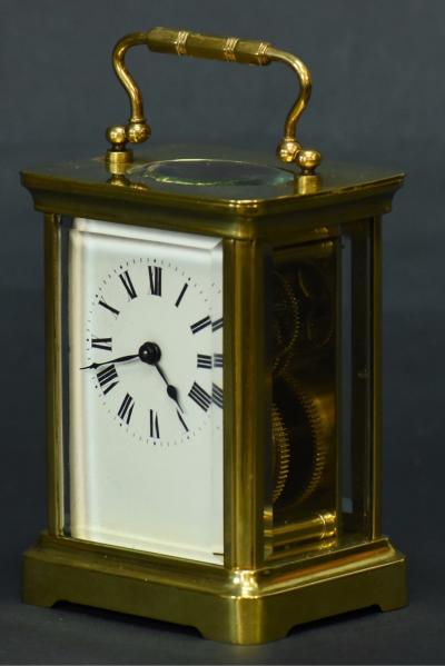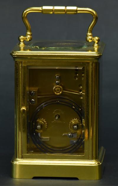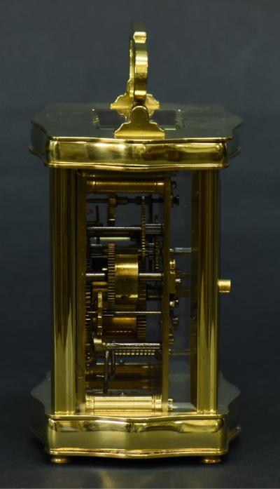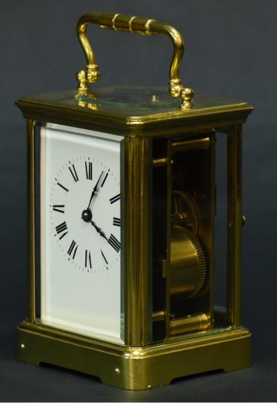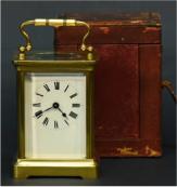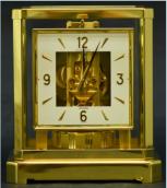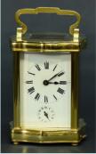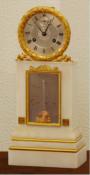 Atmos klok. De enige klok die ‘op lucht leeft’. Maker: Jaeger-LeCoultre, Swiss.Bijzonder: de klok windt zichzelf op door veranderingen in de temperatuur.Kaliber: 528-8.Verguld uurwerk en vergulde kast. Uitvoering met vierkante wijzerplaat. Prijs: VERKOCHTAntieke Officiersklok / carriageklok.Frankrijk, circa 1890.Met slagwerk op gong. Verguld bronzen kast, model Corniche.Afmetingen: hoogte incl. greep 17cm, hoogte excl. greep 13cm, breedte 9cm.Prijs: €.1750,-Top ^Franse boekenkastpendule. Empire, circa 1825. Maker: A. Chaumont, Paris. Uurwerk: Honoré Pons, Paris.Vuurverguld en gegroeneerd brons. Bekroond met buste van de Griekse wijsgeer Hippocrates, ‘vader v.d. geneeskunde’. Afmetingen: h:54cm, b:22cm, buste h:15cm. Prijs: €.1250,-Dubbelzijdige carriageklok met Turkse en klassieke wijzerplaat, circa 1900.Gesigneerd: Wm Webster.Vergulde bronzen kast en ornamenten.Emaille wijzerplaat. Gangduur van één week.H:15cm, B: 14cm, D: 11cm.Prijs: €.950,-Franse pendule d’ Officier. Circa 1890-1900. Geblauwd bronzen kast met verguld bronzen monturen. Emaille wijzerplaat met arabische cijfers.Uurwerk met echappement. Gangduur één week. Afmetingen: totale hoogte 15cm, breedte 8cm.Zware kwaliteit.Prijs: €.1450,-Grote tafelregulateur. Frankrijk, circa 1870.Maker: Raingo Frères, Paris.Met centrale secondenwijzer.Zichtbare brocot-ankergang.Ellicott compensatieslinger.Verguld bronzen fourglass case.14-daagse gangduur. Slagwerk op bel. Prijs op aanvraag. Eureka elektrische klok, circa 1912. Gesigneerd: Eureka Clock Co Ltd. London.Bijzonder gangmechanisme met elektrisch aangedreven balanswiel. Patent uit 1906.Slechts gefabriceerd tussen 1909 en 1914.Verguld bronzen fourglass-case.Loopt circa 1000 dagen op 1½V.Schaars voorkomend!Prijs: VERKOCHTFranse Pendule Thermomètre d’Reamur. Periode Charles X, circa 1825.Kast van albast, vuurvergulde monturen. Verzilverde wijzerplaat en schaalplaat. Met secondenwijzer. Afmetingen: 38x17x9cm. Eventueel stolp beschibkaar.Prijs: €.1350,-