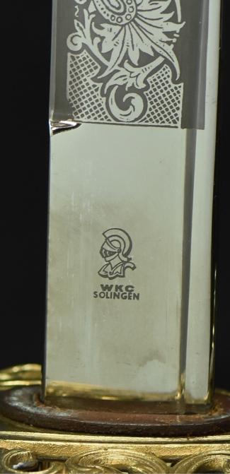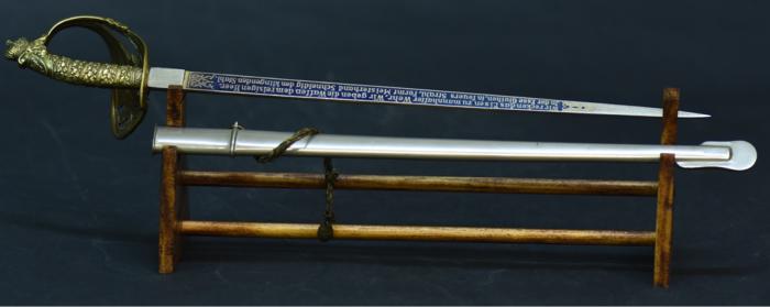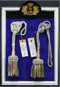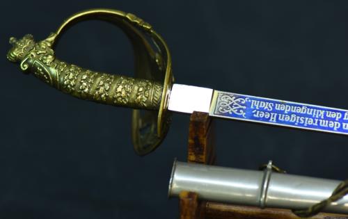 Top ^Klik op de foto’s voor een vergroting. Top ^Top ^Alle (vuur-)wapens in onze collectie zijn vrij te bezitten en te koop voor personen boven de 18 jaar. Duitse Volksempfänger radio. Tweede Wereldoorlog.Model: VE301GW. Maker: Nora Radio.Geïntroduceerd 1933.Uitvoering van 1935-1938.Bakelieten kast. Uitgebreide zenderschaal met stedennamen.Prijs: €.295,-Engels koppel vuursteenzakpistolen.Maker: Forth, York.Circa 1800. Engelse keuren. Afschroefbare lopen. Lengte: 17.5cm.Prijs: €.1650,-Engels vuursteenzakpistool, circa 1770-1780.Maker: Gore, Canterbury.Kolf met zilverinleg. Britse keuren.Afschroefbare kanonsloop.Lengte: 21,5cm.Prijs: VERKOCHTBelgisch militair geweer M1867, Albini-Braendlin.Later in gebruik genomen als jachtgeweer.Kolf met gun checkering. Rijkelijk voorzien van keur- en kwaliteitsstempels.Totale lengte 130cm.Prijs: €.1250,-Top ^Sabeldraagriemen Koninklijke Marine.Voor o.a. het sabel M1882.Links: luxe uitvoering voor over de jas.Prijs: €.175,-Rechts: reguliere uitvoering voor onder de jas. Met opsteekhaak. Prijs: €.125,-Miniatuurmodel van een Colt Walker 1847 percussierevolver. Maker: A. Uberti, Italy.Ivoren en houten greepplaten. Inclusief kruithoorntje. Bijzonder fraai gedetailleerd handwerk. Lengte slechts 18cm! Prijs op aanvraag. Fouragère voor Ritmeester der Cavalerie.Twee kasten met boullions. In uitstekende staat. Schitterende toevoeging aan iedere collectie!Prijs: €.175,- DE: Beierse Pickelhaube M1848.Landwehr.Prijs op aanvraag.Portepees / sabelkwasten voor Koninklijke Marine / Korps Mariniers.Voor o.a. de sabels M1882 en M1854.Links: Rangen tot en met LtZ 2e klas.Prijs: €.85,-Rechts: Rangen LtZ 1e klas en hoger. Prijs: €.115,-Nederlandse fouragère voor Luitenant-Kolonel. Vier kwasten met boullions.In uitmuntende staat. Schitterende toevoeging aan iedere collectie!Prijs: €.225,-Sabeldraagriemen. Links: Korps Mariniers (sabel M1854).Met opsteekhaak. Prijs: €.125,-Rechts: Koninklijke Landmacht. Ophanging voor één oog. Met opsteekhaak. Voor o.a. de sabel M1912, M1895, M1852, etc. Prijs: VERKOCHTTop ^Top ^Sabel M1859 Infanterie Onderofficier.(Korte sabel no. 3)Sabel, schede en drager nummergelijk (672).Gedateerd: 1860.Inclusief bijbehorende originele drager.Prijs: €.475,-DE: Beierse Raupenhelm M1868.Landwehr / Reservisten, manschappen.Ludwig II (R:1864-1886).Maat 56.Prijs op aanvraag.Nederlandse Portepees / sabelkwasten Koninklijke Landmacht. Van links naar rechts: - Portepee M1852 voor Officieren van het Regiment Jagers. Groen koord. Knot van pletzilver. Oranje hart.- Portepee voor Hoofd- en Opperofficieren. Naar Pruisisch model. Oranje hart. - Portepee voor Adjundant-Onderofficieren. Knot van pletzilver. Oranje hart. Nederlandse staatsiedegen, circa 1930-1950.Vuurverguld bronzen gevest en monturen.Opengewerkte pareerplaat met rijkswapen.Parelmoeren greepplaten.Fraai geëtste driekantige kling.Inclusief opbergfoudraal.Prijs: VERKOCHTSabel M1882 Officier der Koninklijke Marine.Maker: W.K.C., Solingen.Verguld bronzen gevest en monturen.Fraai geëtste kling met nautische motieven.Voor Luitenant-ter-Zee en hogere rangen. Kwast optioneel verkrijgbaar.Prijs: €.545,-Ponjaard M1889 Adelborst der Koninklijke Marine.Maker: W.K.C., Solingen.Verguld bronzen gevest en monturen.Kling geëtst met nautische motieven.Prijs: VERKOCHTNederlandse giberne voor Officier der Artillerie.Patroontas met gekruiste kanonnen onder kroon. Bandelier met leeuwenmasker met ruimnaalden aan kettingen boven een schild met springende granaat.Zwart lakleder met verguld bronzen monturen. Prijs: €.645,-Steek en epauletten Koninklijke Marine.Voor subalterne officier.In de bijbehorende metalen kist.Vooroorlogs. Prijs:VERKOCHTDiverse Portepees / sabelkwasten en klewangdrager. Van links naar rechts: - Leren Portepee aan leren lis. Periode 1934-1940.- Leren Portepee aan zwart koord. Periode 1913-1934.- Leren klewangdrager. Scharnierend.- Britse portepee. Litho KNIL: Infanterie Oost-Indisch Leger in Marsch- en Klein Tenue. 1896.Ontwerp: J.P. de Veer.Afkomstig uit: ‘De Uniformen van de Nederlandsche Zee en Landmacht’.Uitgegeven in 1900. Fraai ingelijst.Prijs: €.145,-Duits Keizerlijk miniatuursabel.Bronzen gevest met voorstelling van Germania die de Duitse adelaar kroont.Geblauwde kling met inscriptie.Plus portepee.Prijs: €.