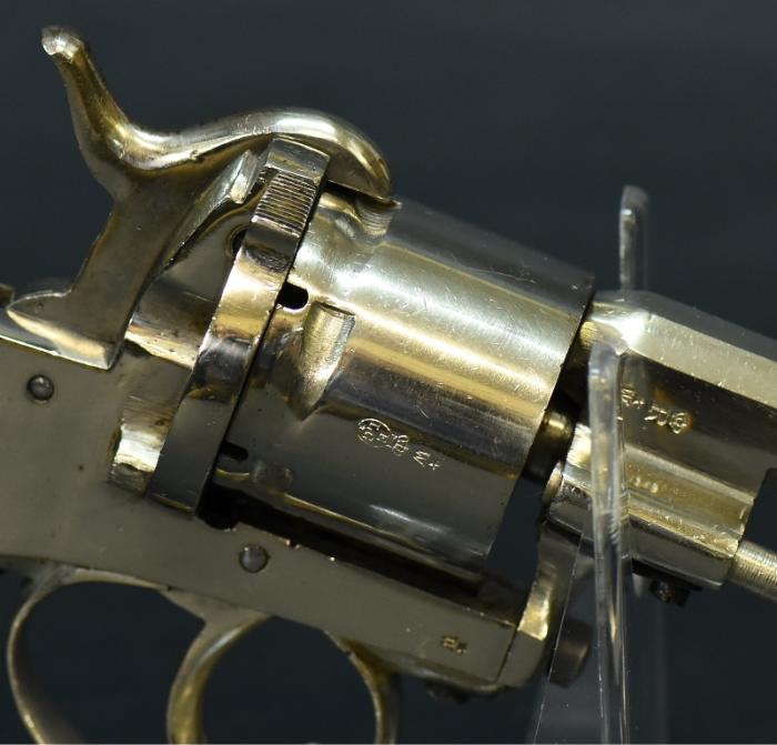 Top ^Klik op de foto’s voor een vergroting. Top ^Top ^Alle (vuur-)wapens in onze collectie zijn vrij te bezitten en te koop voor personen boven de 18 jaar. Penvuurrevolver, circa 1860.Luiks gekeurd.Vernikkelde monturen. 6-schots. Lengte totaal 24cm.Prijs: €.750,-Engels koppel vuursteenzakpistolen.Maker: Forth, York.Circa 1800. Engelse keuren. Afschroefbare lopen. Lengte: 17.5cm.Prijs: €.1650,-Klewang KNIL M1911.Maker: Hembrug.Schede: CW N 6 28 A F.Plaatje op gevest: P.A.R. 19 (Stadspolitie Djokjakarta).Keurmeester: H/kroon.Vroege schede met korte onderband.Prijs: €.595,-Belgisch militair geweer M1867, Albini-Braendlin.Later in gebruik genomen als jachtgeweer.Kolf met gun checkering. Rijkelijk voorzien van keur- en kwaliteitsstempels.Totale lengte 130cm.Prijs: €.1250,-Top ^Sabeldraagriemen Koninklijke Marine.Voor o.a. het sabel M1882.Links: luxe uitvoering voor over de jas.Prijs: €.175,-Rechts: reguliere uitvoering voor onder de jas. Met opsteekhaak. Prijs: €.125,-Penvuurrevolver, circa 1860.Luiks gekeurd. Onderdelen nummergelijk.6-schots. Lengte totaal 17cm.Prijs: €.625,-Fouragère voor Ritmeester der Cavalerie.Twee kasten met boullions. In uitstekende staat. Schitterende toevoeging aan iedere collectie!Prijs: €.175,- DE: Beierse Pickelhaube M1848.Landwehr.Prijs op aanvraag.Portepees / sabelkwasten voor Koninklijke Marine / Korps Mariniers.Voor o.a. de sabels M1882 en M1854.Links: Rangen tot en met LtZ 2e klas.Prijs: €.85,-Rechts: Rangen LtZ 1e klas en hoger. Prijs: VERKOCHTNederlandse fouragère voor Luitenant-Kolonel. Vier kwasten met boullions.In uitmuntende staat. Schitterende toevoeging aan iedere collectie!Prijs: VERKOCHTSabeldraagriemen. Links: Korps Mariniers (sabel M1854).Met opsteekhaak. Prijs: €.125,-Rechts: Koninklijke Landmacht. Ophanging voor één oog. Met opsteekhaak. Voor o.a. de sabel M1912, M1895, M1852, etc. Prijs: VERKOCHTTop ^Top ^Sabel M1876 Officier der Cavalerie.Maker: W.K.&Cie, Solingen. Leverancier: Gebr. van Leer, Utrecht. Op de kling: Yzerhouwer. Greep omkleed met roggehuid. Vooroorlogs exemplaar. Demontabel.Kwast optioneel verkrijgbaar.Prijs: €.575,-DE: Beierse Raupenhelm M1868.Landwehr / Reservisten, manschappen.Ludwig II (R:1864-1886).Maat 56.Prijs op aanvraag.Nederlandse Portepees / sabelkwasten Koninklijke Landmacht. Van links naar rechts: - Portepee M1852 voor Officieren van het Regiment Jagers. Groen koord. Knot van pletzilver. Oranje hart.- Portepee voor Hoofd- en Opperofficieren. Naar Pruisisch model. Oranje hart. - Portepee voor Adjundant-Onderofficieren. Knot van pletzilver. Oranje hart. Nederlandse staatsiedegen, circa 1930-1950.Vuurverguld bronzen gevest en monturen.Opengewerkte pareerplaat met rijkswapen.Parelmoeren greepplaten.Fraai geëtste driekantige kling.Inclusief opbergfoudraal.Prijs: VERKOCHTSabel M1882 Officier der Koninklijke Marine.Maker: W.K.C., Solingen.Verguld bronzen gevest en monturen.Fraai geëtste kling met nautische motieven.Voor Luitenant-ter-Zee en hogere rangen. Kwast optioneel verkrijgbaar.Prijs: €.545,-Klewang Politie.Maker: E.&F. Hörster, Solingen.Zwartlederen schede.Vernikkeld gevest en monturen. Prijs: €.450,-Nederlandse giberne voor Officier der Artillerie.Patroontas met gekruiste kanonnen onder kroon. Bandelier met leeuwenmasker met ruimnaalden aan kettingen boven een schild met springende granaat.Zwart lakleder met verguld bronzen monturen. Prijs: €.645,-Steek en epauletten Koninklijke Marine.Voor subalterne officier.In de bijbehorende metalen kist.Vooroorlogs. Prijs:VERKOCHTDiverse Portepees / sabelkwasten en klewangdrager. Van links naar rechts: - Leren Portepee aan leren lis. Periode 1934-1940.- Leren Portepee aan zwart koord. Periode 1913-1934.- Leren klewangdrager. Scharnierend.- Britse portepee. Litho KNIL: Infanterie Oost-Indisch Leger in Marsch- en Klein Tenue. 1896.Ontwerp: J.P. de Veer.Afkomstig uit: ‘De Uniformen van de Nederlandsche Zee en Landmacht’.Uitgegeven in 1900. Fraai ingelijst.Prijs: €.145,-Duits Keizerlijk miniatuursabel.Bronzen gevest met voorstelling van Germania die de Duitse adelaar kroont.Geblauwde kling met inscriptie.Plus portepee.Prijs: €.