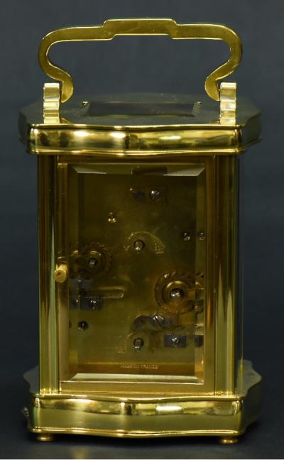 Atmos klok. De enige klok die ‘op lucht leeft’. Maker: Jaeger-LeCoultre, Swiss.Bijzonder: de klok windt zichzelf op door veranderingen in de temperatuur.Kaliber: 528-8.Verguld uurwerk en vergulde kast. Uitvoering met vierkante wijzerplaat. Prijs: VERKOCHTAntieke Officiersklok / carriageklok.Frankrijk, circa 1890.Met slagwerk op gong. Verguld bronzen kast, model Corniche.Afmetingen: hoogte incl. greep 17cm, hoogte excl. greep 13cm, breedte 9cm.Prijs: €.1750,-Top ^Franse boekenkastpendule. Empire, circa 1825. Maker: A. Chaumont, Paris. Uurwerk: Honoré Pons, Paris.Vuurverguld en gegroeneerd brons. Bekroond met buste van de Griekse wijsgeer Hippocrates, ‘vader v.d. geneeskunde’. Afmetingen: h:54cm, b:22cm, buste h:15cm. Prijs: €.1250,-Dubbelzijdige carriageklok met Turkse en klassieke wijzerplaat, circa 1900.Gesigneerd: Wm Webster.Vergulde bronzen kast en ornamenten.Emaille wijzerplaat. Gangduur van één week.H:15cm, B: 14cm, D: 11cm.Prijs: €.950,-Franse pendule d’ Officier. Circa 1890-1900. Geblauwd bronzen kast met verguld bronzen monturen. Emaille wijzerplaat met arabische cijfers.Uurwerk met echappement. Gangduur één week. Afmetingen: totale hoogte 15cm, breedte 8cm.Zware kwaliteit.Prijs: €.1450,-Grote tafelregulateur. Frankrijk, circa 1870.Maker: Raingo Frères, Paris.Met centrale secondenwijzer.Zichtbare brocot-ankergang.Ellicott compensatieslinger.Verguld bronzen fourglass case.14-daagse gangduur. Slagwerk op bel. Prijs op aanvraag. Eureka elektrische klok, circa 1912. Gesigneerd: Eureka Clock Co Ltd. London.Bijzonder gangmechanisme met elektrisch aangedreven balanswiel. Patent uit 1906.Slechts gefabriceerd tussen 1909 en 1914.Verguld bronzen fourglass-case.Loopt circa 1000 dagen op 1½V.Schaars voorkomend!Prijs: VERKOCHTFranse Pendule Thermomètre d’Reamur. Periode Charles X, circa 1825.Kast van albast, vuurvergulde monturen. Verzilverde wijzerplaat en schaalplaat. Met secondenwijzer. Afmetingen: 38x17x9cm. Eventueel stolp beschibkaar.Prijs: €.1350,-